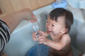 2017年07月19日 シャワータイム 0歳児 はな 今日は暑かったので水遊びを兼ねたシャワータイムをとりました。 ペットボトルに穴をあけたシャワーに大喜び。 シャワー自体を上向きにして噴水の様にすると少しずつ自分で触っていました。 また、これはこう使うと知っているようでシャワーヘッドを持ち頭をかがめて自分でお湯をかけてみる子もいました。 最後はシャワーが楽しすぎて終わりにすると怒ってしまう子もいました。 また、水遊びしようね。 一覧へ戻る