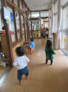 2017年10月13日 歩くの楽しい♪ 0歳児 はな ホールに出かける時に歩いていくのが楽しみになっています。 途中、気になるクラスに寄り道する子もいますが、あっという間に自分で目的地にたどり着く子もいました。 部屋に帰る時には、ゆきぐみさんが「おいで」と声をかけてくれました。 一覧へ戻る