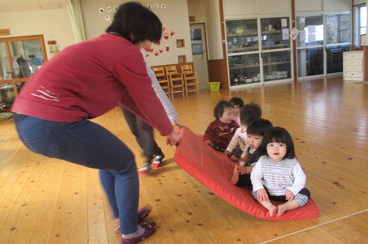 2019年01月28日 ホールで遊んだよ 0歳児 はな ホールで遊びました(*^-^*) ひな壇をまたいで前へ前へ進んだり、「バスにのって」の歌に合わせて身体を揺らしたりしました。 マットを出すと、みんな乗っていたので職員が「よいしょよいしょ」とマットを引っ張ってみました。 不思議な乗り物のような感覚でニッコリとほほ笑むこどもたちでした♪ 一覧へ戻る