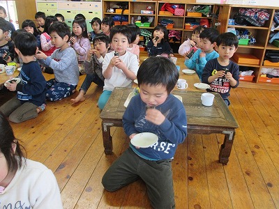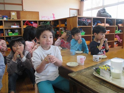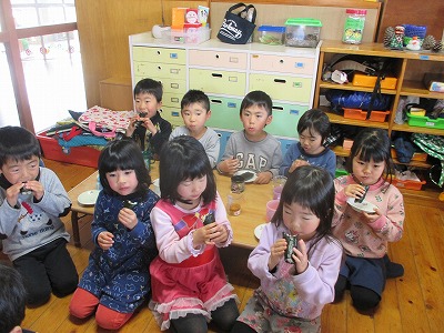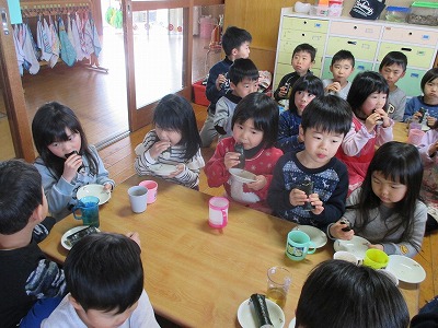 2019年02月01日 静かにね・・・ 4歳児 ほし 今日のおやつは恵方巻きでした。 静かに最後まで食べると願い事がかなうことを伝えると 誰一人話をせずに食べきることができていました。 みんなどんな願い事をしたのかな・・・? 一覧へ戻る