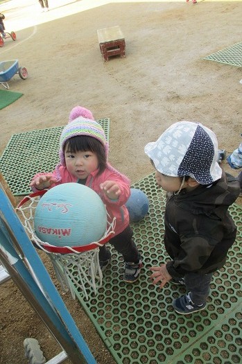2019年02月05日 ボールあそび 0歳児 はな 今日は天気もよかったので戸外で遊びました(*^-^*) ボールを見つけて職員とキャッチボールをしたり、バスケットゴールにシュートしたりして遊びました。 ボールをゴールに慎重に入れようとしたり、「ポーンッ!」と言いながらシュートするこどもたちでした☆ 一覧へ戻る