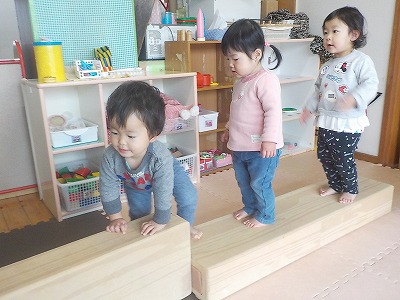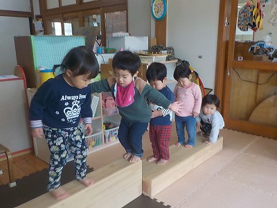 2019年02月06日 渡れるかな? 1歳児 ゆき 布ベンチを2つ繋げて一本橋のように渡りました。途中、そのうち1つを縦にして 難易度アップ。どうかなと思ったのですが上手にバランスをとりながら渡るこどもたち。 端まで行くと「ピョーン」とジャンプ。何度も繰り返し楽しんでいました。 一覧へ戻る
