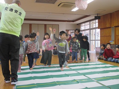 市役所の交通安全課の方たちが来てくださり、交通マナーを教えてくださいました。