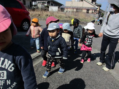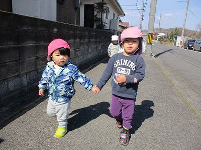 2019年03月14日 一緒に歩くと楽しいね 1歳児 ゆき 2歳児 にじ 初めてゆきぐみとにじぐみで散歩に行きました。 ゆきぐみは“お兄ちゃんお姉ちゃんと歩く嬉しさ”にじぐみは“小さな友だちと歩く責任感”を それぞれが感じているようでした。 東6丁目の公園に行って滑り台をして遊びました。友だち同士で「ここに並ぶんよ」と 優しく教える姿もありました。 散歩を通して異年齢の関わりが持てて良かったです。 一覧へ戻る