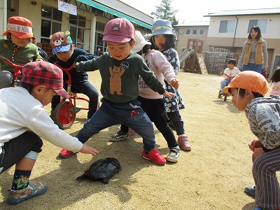 2019年03月20日 おはよう 2歳児 にじ 長い冬眠から目覚めたカメとあそびました。 「おはよう!!」と大きな声で呼びかけていました。 動きが多いカメや、なかなか動かないカメ。 なかなか動いてくれませんが、我慢強くカメが通るのを待っていました。 ゆっくり歩いてくるカメに「こっちよ」「こっちおいで」と声をかけていました。 通っていいよ おはようカメさん 一覧へ戻る
