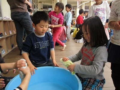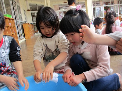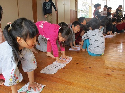 2019年03月01日 ほしぐみへの引き継ぎ 5歳児 そら 今日はリズムの後に雑巾がけのやり方をほしぐみに伝えました。 使うものは自分で縫った雑巾! 縫ってから初めて使うのでそらぐみたちもわくわく! それぞれほしぐみとペアになり、絞り方や拭く時の力の入れ方などを優しく教える姿がステキでした。 一覧へ戻る