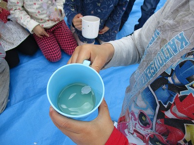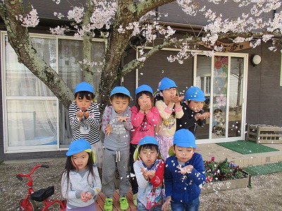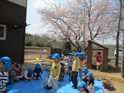 2019年04月09日 プチ花見 5歳児 そら 保育園の桜が満開になり、こどもたちは大喜びでした。 桜の花びらを集めてお店屋さんごっこをしたり、 友だちと「せーの、ふー!」と息を吹きかけて飛ばしたりして遊びました。 リズムの後には、桜の木の下でプチ花見をしました。 風が吹くと花びらがひらひら降ってきて「きれい!」「お茶に花びらが浮いた」と ゆったりした時間を過ごしました。 一覧へ戻る