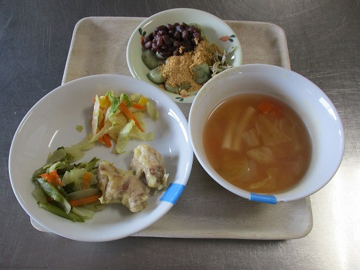 おやつの団子に入っているよっもぎは、ほしぐみ・そらぐみの園児が採ってきてくれました。少し苦みはありますが、喜んで食べていました!!
