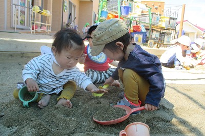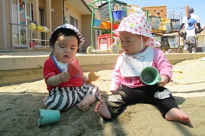 2019年05月08日 砂の感触気持ちがいいね 0歳児 はな 初めて砂場に行きました。砂にそっと触ってみたり、上のクラスのやっていることを真似してみたり ”これはなんだろう”とじっと見つめる姿もありました。 いろいろな出会いに刺激がいっぱいです。 一覧へ戻る