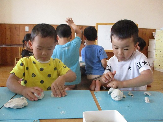 2019年05月13日 ねんどをしました 4歳児 ほし 今日は、粘土をしました。 久しぶりの粘土あそびに「するー!」と元気よく答えてそれぞれの力作を作ってくれました。 また、できあがったものを職員のところへ持って来てくれる姿も見られました(*^-^*) また遊ぼうね♪ 一覧へ戻る