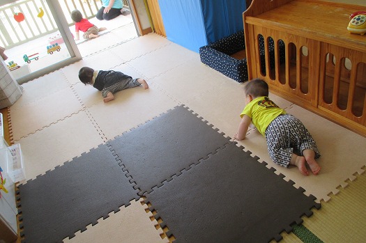 テラスのドアを開けるとズリバイで前進。