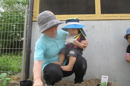 外では、なすびとモロヘイヤを植えました。