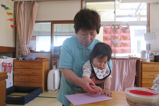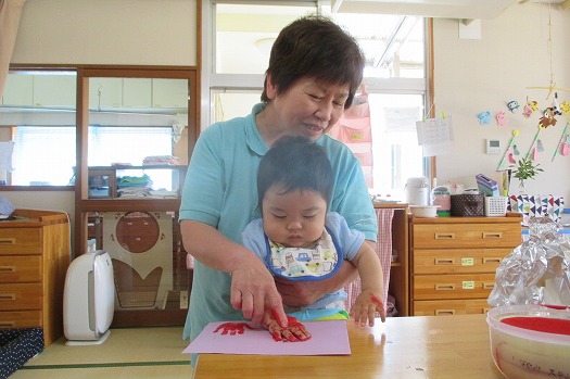 手形をとりました。”なんだろう?”と不思議な顔で自分の手をずっと見ていました。