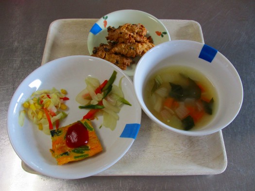 2019年06月04日 給食室(今日の昼食・おやつ) 給食室 昼食 ・コッペパン ・ほうれん草のオムレツ ・アスパラガスのソテー ・キャベツのサラダ ・雑穀スープ おやつ ・コーンフレーククッキー ・牛乳(3上) 雑穀スープはとろみがついてこどもたちにも人気です。暑くなってきましたが、給食も工夫して食べてもらうようにしたいです。 一覧へ戻る