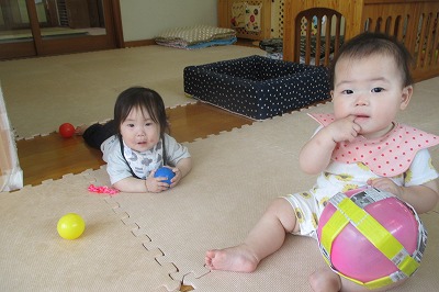 ボールを出すと、珍しそうに目を輝かせニコニコで触っています。