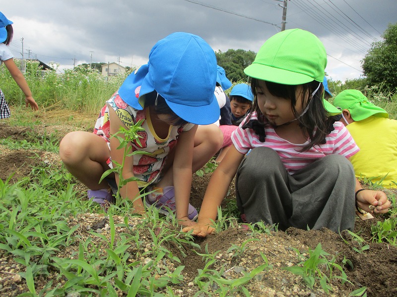 じゃがいもの葉っぱを引っ張ってじゃがいもが出てきた時は、「あったよ!」と嬉しそうな表情で教えてくれました♪