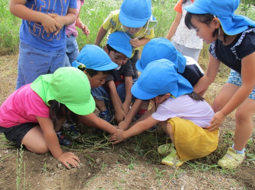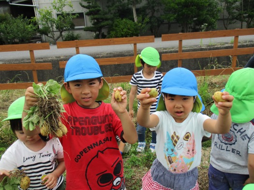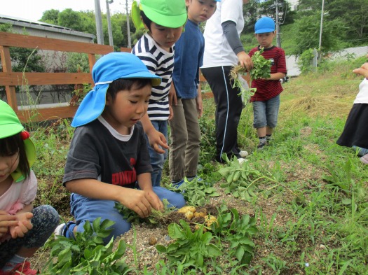 2019年06月13日 じゃがいも収穫! 5歳児 そら ほしぐみの時に植えたジャガイモの収穫をしにそら畑に行ってきました。 「じゃがいも出来とるかな」と楽しみにしていたこどもたち。 掘っていくと小さいのから大きいのまでたくさん収穫できました。 連なって収穫できた子もおり、「見て!」と笑顔で見せてくれました。 可愛いじゃがいも収穫! うわ!繋がってる! 最後は草抜きもしっかりしました。 手ごわい草も友だちと協力して抜いていましたよ。 みんなで力を合わせて! 一覧へ戻る