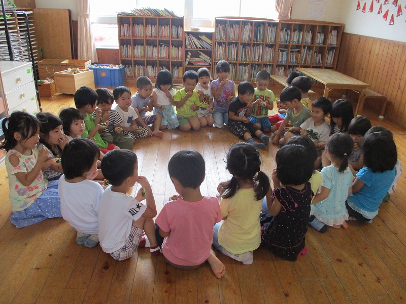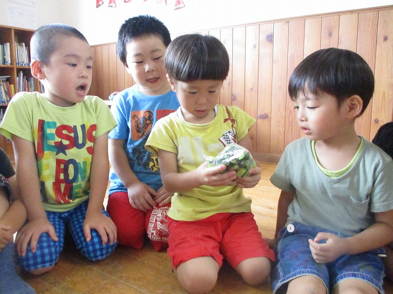袋を開けると「おいしい匂いがする」とこどもたち。