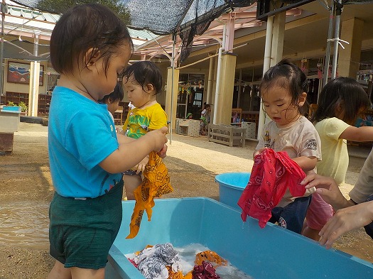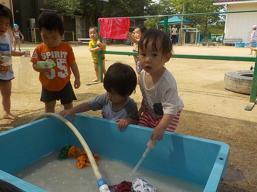 2019年07月17日 泡あそび 1歳児 ゆき 今日は泡あそびをしました。 最初は泡の感触を楽しみ、途中からバンダナを入れて 洗濯ごっこになりました。 遊びで使っているバンダナがきれいになりました♪ 一覧へ戻る