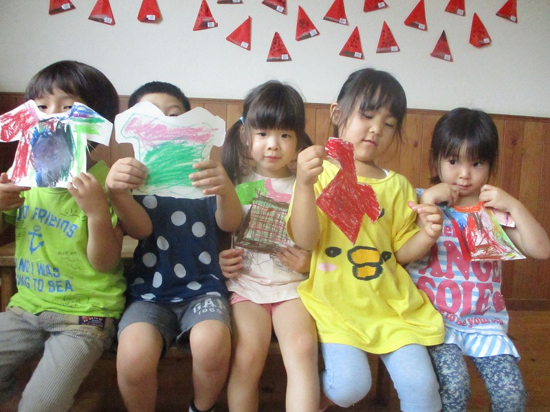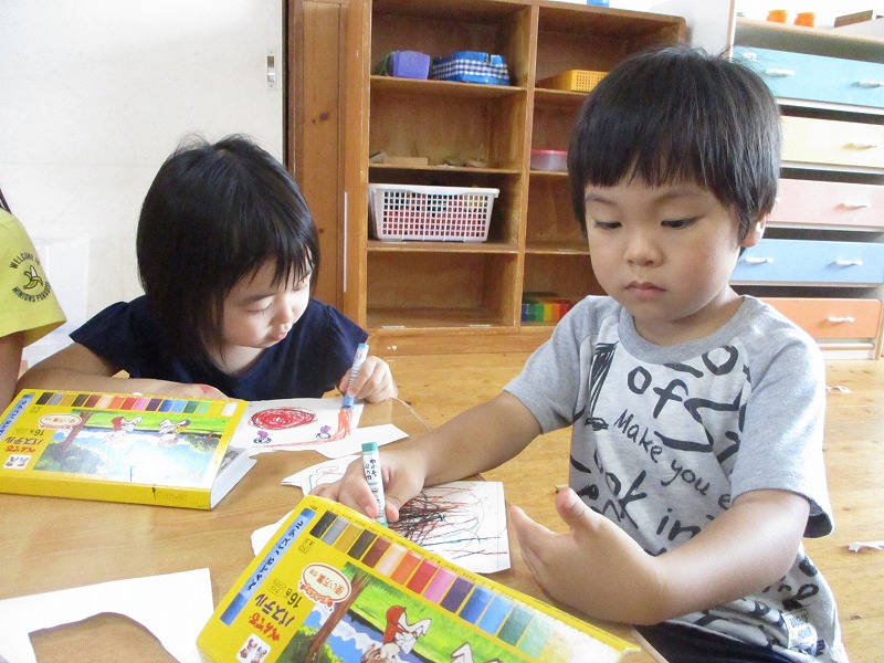 2019年07月22日 お気に入りのTシャツ 4歳児 ほし 今日は、服の製作をしました(*^-^*) はさみを使って丁寧に切るほしぐみさん。 はさみで切った後は、クレヨンで好きな模様を描きました。 出来上がると、「みてみて」と友だちと見せ合ったり、保育者にみせてくれるこどもたちでした。 一覧へ戻る