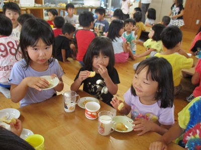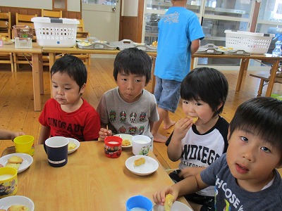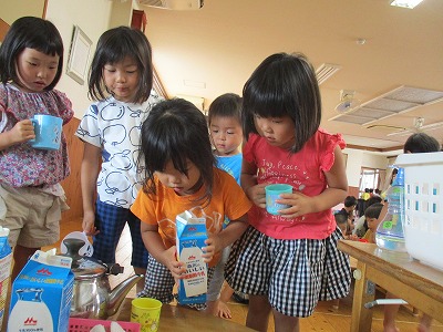 2019年07月31日 みんなでおやつ 5歳児 そら 今日はつき組・ほし組と一緒にホールでおやつを食べました。 「一緒に食べようね」と声をかけるといつも以上に早く着替えて 片付けを手伝ってくれるそらぐみさん。 着替えを手伝ってくれたり牛乳を入れてくれたりと とても頼もしかったです。 また、自分で入れたい子に対しては 周りから見守って「ゆっくりでいいよ」と声をかけている子もいました。 みんなで楽しくおやつを食べることができました。 今後も続けていきたいと思います。 一覧へ戻る