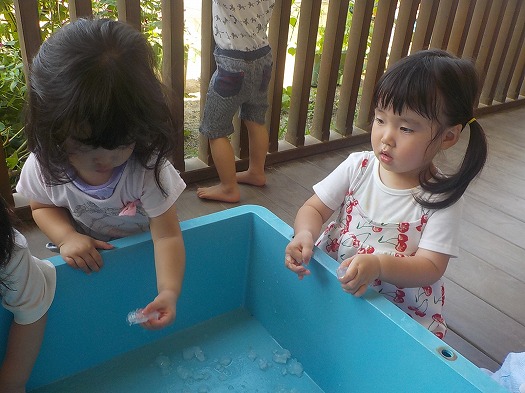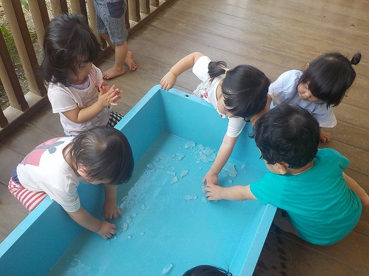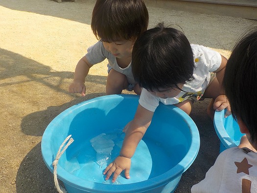 2019年08月02日 寒天あそび 1歳児 ゆき 今日は寒天あそびをしました。 「なんだろう?」と興味を持って触り始めるこどもたち。 ブニュブニュ、グニュぐにゅと不思議な感触にハマったのか 何度も何度も触っていました。 潰してみたり、積み重ねてみたり投げてみたりして それぞれがあそびを楽しんでいました。 一覧へ戻る