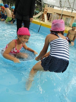 2019年08月23日 たらいに乗って・・・ 5歳児 そら たらいに乗って、友だちと引っ張り合いっこをしました。 乗っていれば「しゅーん」と進んでいて、 自然と笑顔になっていました。 引っ張るほうは「軽い!」と余裕を見せていました。 一覧へ戻る