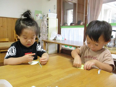 指先を器用に使い、台紙からはがして画用紙にペタリ。