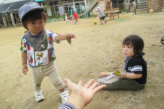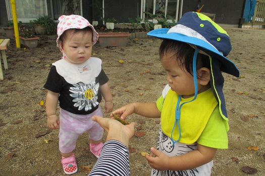 を拾って保育者に渡していました。秋の自然をこれから感じていきたいです。