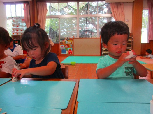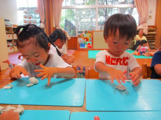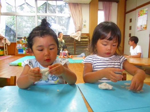 2019年09月11日 丸めて、伸ばして… 2歳児 にじ 今日は室内で粘土をして遊びました。 粘土などを用意しているとすぐに近くに集まってくるこどもたち。 少しずつ粘土を分けて渡すと丸めたり、伸ばしたりして夢中になっていました。 丸めて団子を作ったり、細長く伸ばしてヘビにしたりと 素敵な作品がたくさんできました。 一覧へ戻る
