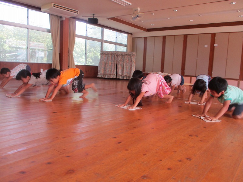 2019年09月17日 任せてね☆ 4歳児 ほし そら組がキャンプに行っている間、 そら組の仕事をほし組がしました。 雑巾がけ、うさぎ当番、布団敷き…と することはたくさんでしたが、 「代わりにせんとな」「何したらいい?」と やる気いっぱいのこどもたち。 グループごとに役割を分けて 3日間、日替わりで当番活動をしました。 「そら組さんってすごいな…」と言う子も。 “役割”が嬉しいほし組っ子。 保育園のために、みんなのために できることをしていけたらなと思います。 一覧へ戻る