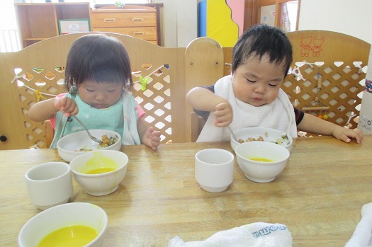 2019年10月02日 スプーンを使って 0歳児 はな 自分でスプーンを持って食べることにも慣れてきました。 食べ物をすくう時は、とても集中していて真剣そのもの。 自分では難しい時は、スプーンを差し出して”すくって”と知らせています。 一覧へ戻る