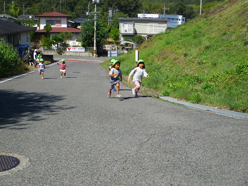 2019年10月10日 坂道ダッシュ 4歳児 ほし 今日は、天気も良かったので、坂道ダッシュをしました。 坂道を走ることも少しずつ慣れてきたほしぐみさん♪ 今日はいつもより少し距離を伸ばしてみることに… 「いちについてよーい、どん」の掛け声に合わせてスタートします! 一覧へ戻る