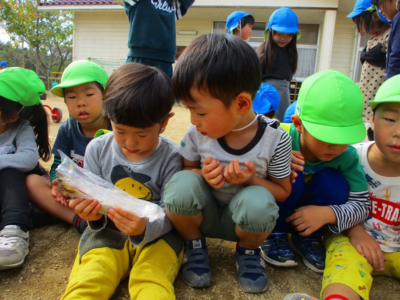 2019年10月23日 おいしそうなにおい… 4歳児 ほし 今日は、サンマキャラバンがありました。 園庭からサンマを焼くいい香りが…! 実際にサンマを触ってみたり、匂いを嗅いだり… 「おいしそう、早く食べたい!」と言っていたほしぐみさんです☆ 楽しみにしていた給食の時間になると、おかわりのサンマはあっという間に完食でした♪ 一覧へ戻る