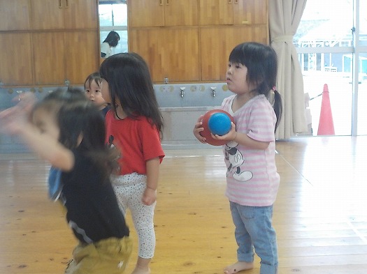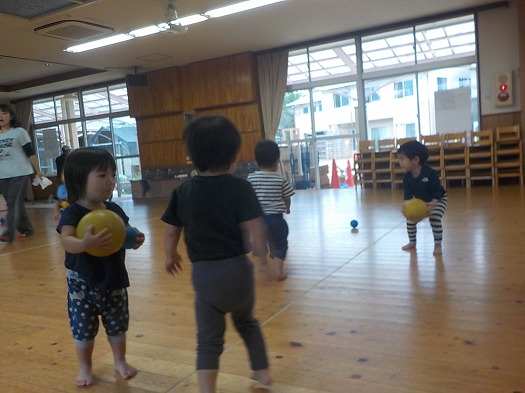 1人ひとつボールを持って転がしたり追いかけたりして遊びました。