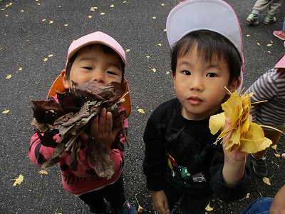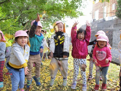 2019年11月14日 落ち葉ひろい 3歳児 つき 亀の冬眠に必要な落ち葉が足りなく… 今日も拾いに行ってきました♪ 今回はくちぶえの家の近くの所へ拾いに行きました。 落ち葉を拾おうと側へ行くと、イチョウの葉のじゅうたんになっており… 「おお~」「きれい~」と大興奮の子どもたち! 葉っぱをひろうのを忘れ、イチョウの葉をバサーっとかけあって楽しむつき組さんです。 その後は、しっかり葉っぱやどんぐりも拾いました☆ 一覧へ戻る