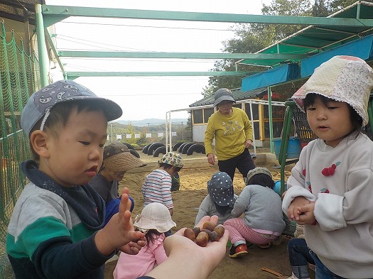 先日、どんぐりを使って遊びました。