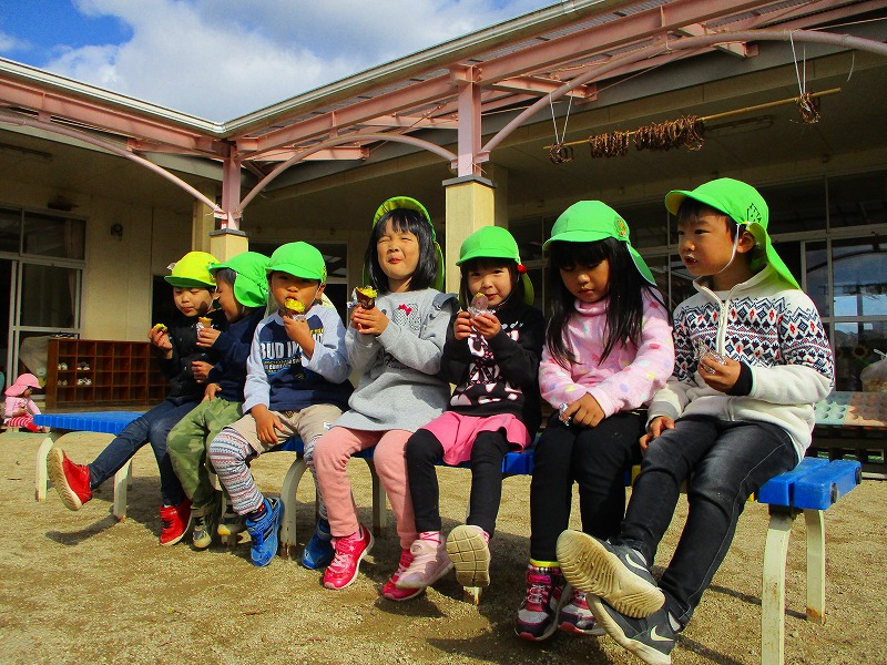 2019年11月19日 やきいもおいしいね 4歳児 ほし 今日はやきいもパーティがありました。 焼き芋をもらうための引換券として、ほしぐみはどんぐり公園まで葉っぱを拾いに行きました♪ 葉っぱをたくさん持って帰り、焼き芋と変えてもらうと、「わー!おいしそう!」「大きいね♪」とそれぞれ感想を友だちと言いながらおいしく食べました。 一覧へ戻る
