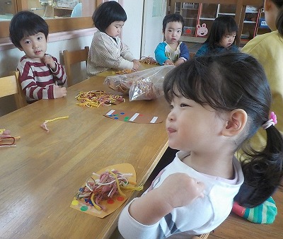 保育者が毛糸を出すと「わー!」「きゃー!」と大喜びでした。