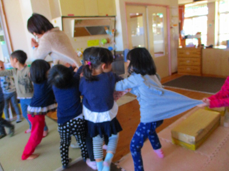 2019年11月29日 なりきって… 4歳児 ほし 今日は、劇の登場人物になりきって園内を探検しました♪ 「みんなで泥棒になっておやつを取りに行くよ」と知らせると、こっそりと歩いて行く姿が見られました。 玩具の食べ物を見つけると、みんなでクッキングするふりをしてパーティもしてみました。 一覧へ戻る