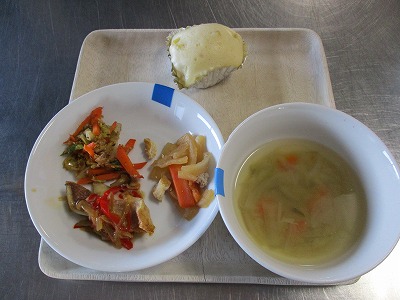 2019年12月04日 給食室(今日の昼食・おやつ) 給食室 昼食 ・ごはん ・魚のきのこあんかけ ・炊き合わせ ・白菜のおかか和え ・ごぼうのみそ汁 おやつ ・さつまいも蒸しパン ・牛乳 きのこあんかけは赤ピーマン・たまねぎ・きのこ類を入れています。きのこが苦手な子もあんに入れると臭みが気にならなくて、よく食べていました。 一覧へ戻る