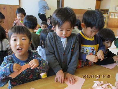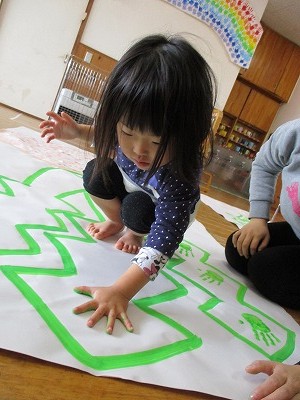「美味しいかぶになーれ」と愛情をこめて貼っていく子どもたちです♪