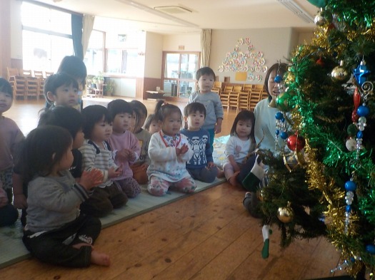 ホールに飾ってあるクリスマスツリーを見に行きました。