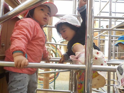 2019年12月09日 自分で登れるよ 1歳児 ゆき 先日、ジャングルジムに登ってあそびました。 最近ジャングルジムに登ることがブームのこどもたち。外に出ると必ず1回はジャングルジムに登っています。 いつの間にか自分の力だけで登れるようになっている姿に驚きました。 手足の力が強くなってきているのを感じました。 しっかり身体を動かすと楽しいね。 楽しかったね。またあそぼうね。 一覧へ戻る