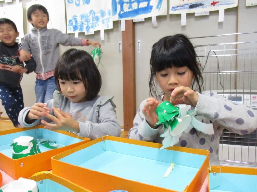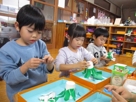 2019年12月18日 もうすぐクリスマス! 5歳児 そら 「クリスマスの製作したいな~」「サンタさん来てくれるかな?」と言っているこどもたち。 クリスマスに向けて紙コップでクリスマスツリーを作りました。 指先を使って折り紙を長くちぎって貼りました。 「クリスマス楽しみ!」とワクワクしているこどもたちです。 一覧へ戻る