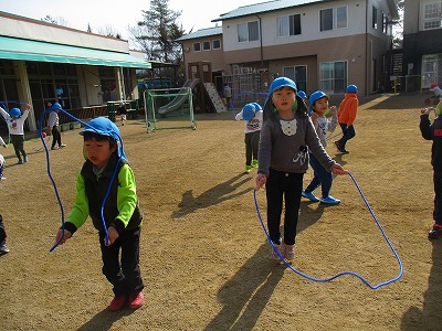 2020年01月16日 なわとび 5歳児 そら なわとびをしました。 使い方を伝えると「わたしできる!」「やったことない」 と様々な声が聞こえてきました。 いざ挑戦すると縄をまわすのが難しかったようで苦戦していました。 しかし、何度も挑戦しようとしていて 成功した時には「できた!」と目が輝いていました。 一覧へ戻る