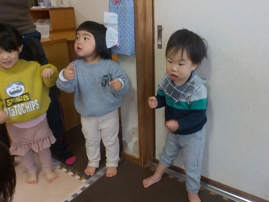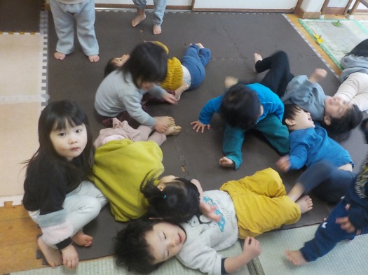 2020年01月23日 ダンスダンス♪ 1歳児 ゆき 室内で踊りやうたあそびをしました。 「鬼のパンツ」や「バスに乗ってゆられてる」をしました。 ”右に曲がります”というフレーズのところで、一斉に床に寝転がるこどもたちです。 友だちや保育者と一緒にノリノリで踊って楽しみました。 また踊ろうね。 一覧へ戻る