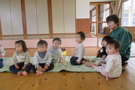 2020年01月29日 リズムをしたよ 0歳児 はな 初めて、ホールでにじ組とゆき組でリズムをしました。 にじ組のやっている姿に迫力があったようで、見入っている こどもたちです。 はな組の番になると緊張からか、なかなか身体を動かすことができませんでしたが、 保育者と一緒なら、少し走ることもできました。また、一緒にしようね。 一覧へ戻る