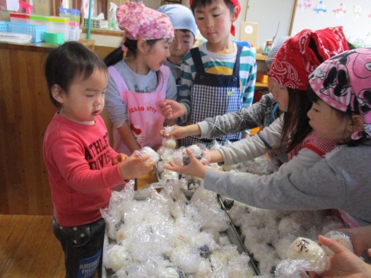 2020年02月13日 おにぎり屋さん 5歳児 そら そらぐみは鍋パーティーでおにぎり屋さんをしました。 全クラスのおにぎりを作ることを伝えるとあまりの多さに驚きながらも気合が入っていたこどもたち。 お客さんが来ると大慌てです。 「忙しい」と言いながら次々におにぎりを握っていました。 出来たおにぎりと鍋は園庭でほしぐみさんと一緒に食べました。 おいしかったね。 一覧へ戻る