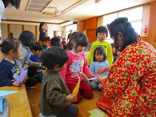2020年03月03日 ひなまつり 4歳児 ほし 今日はひなまつり会がありました。 ほしぐみは、にじぐみとペアになりおひなさまのシールを探しに園内を歩きました。 ほしぐみらしく、にじぐみのこどもたちと優しく手を繋いだり、シールを貼る場所を知らせたりと、異年齢で楽しむ姿が見られました☆ シールを集めると、カルピスとひなあられをもらってみんなでおいしく食べました♪ 一覧へ戻る